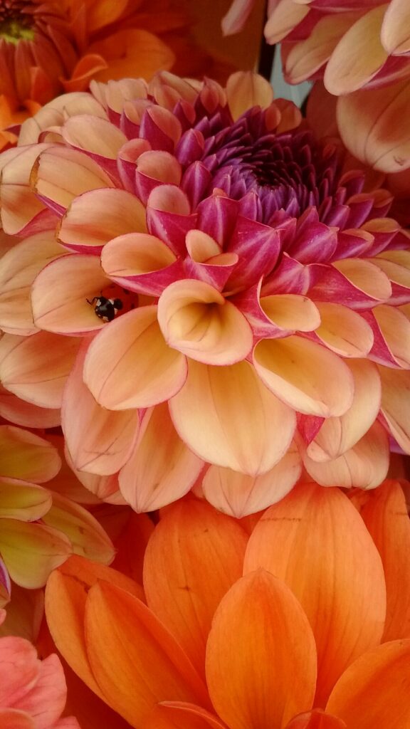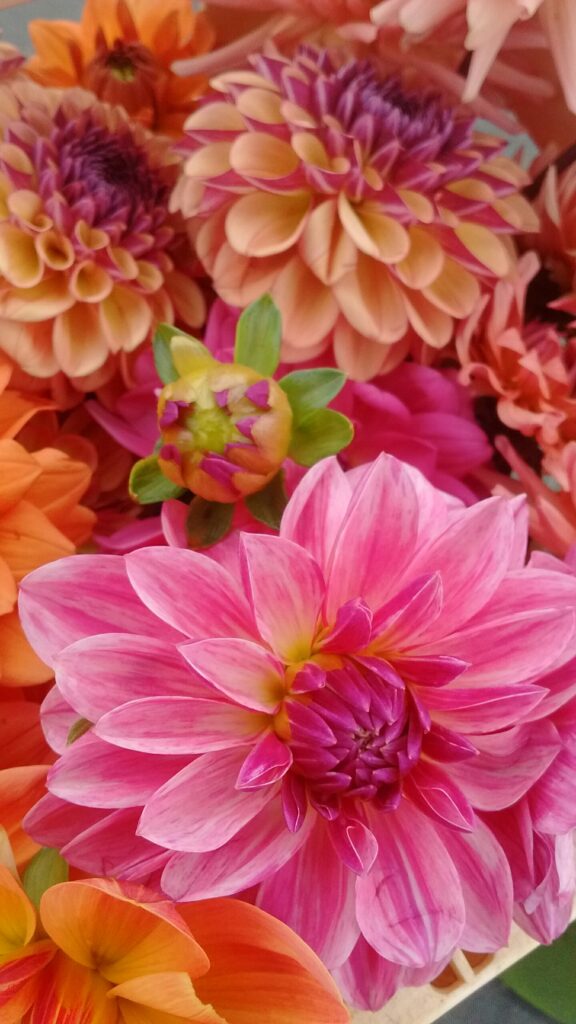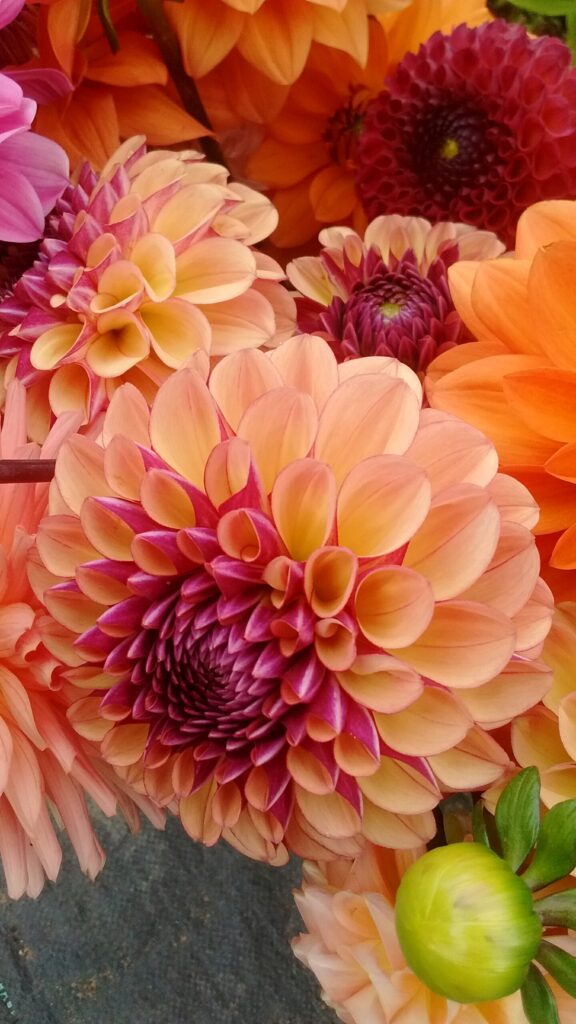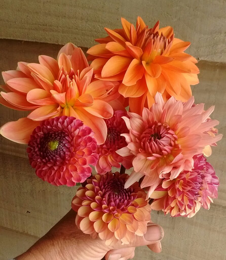 Dahlias include ‘Apricot Desire’ , ‘Bonesta’ , ‘Burlesca’ , ‘Palmares’ , ‘Preference’ and ‘Summer Flame’ , wow , just , wow !