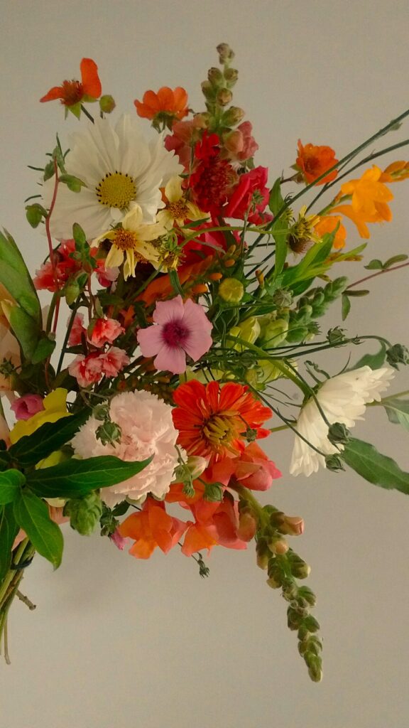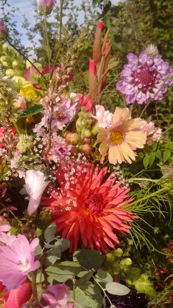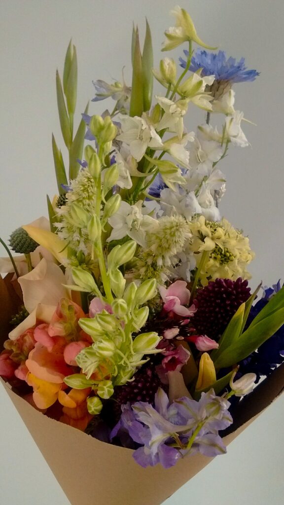 Finally , at the end of the month , my Dahlias began to appear (oh the joy). I included one of the first and favourites (‘Josudi Mercury’) in a lovely gift Bouquet , full of sunshine and love.