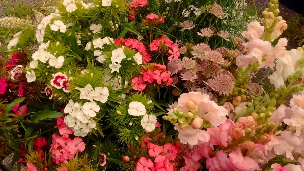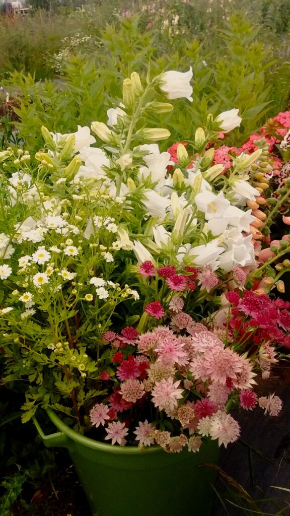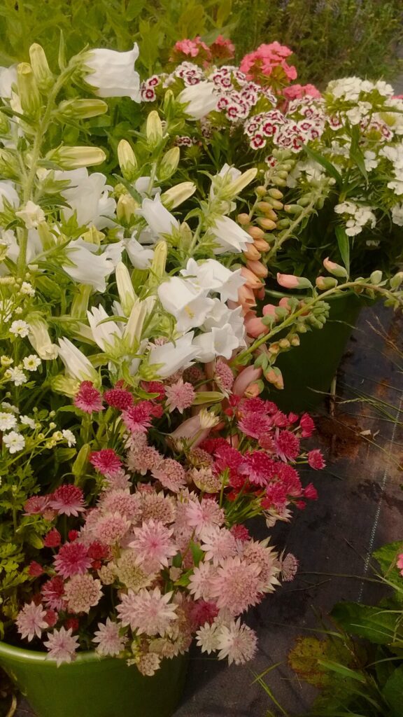 Well June ’25 was especially bountiful and beautiful ! I harvested 100’s of Stems of wonderful Sweet Williams earlier in the month , these were definitely one of my huge successes for this year , since growing from seed last Summer ! They shone , along with Antirrhinums and Astrantias , all in such yummy , fresh-berry tones.