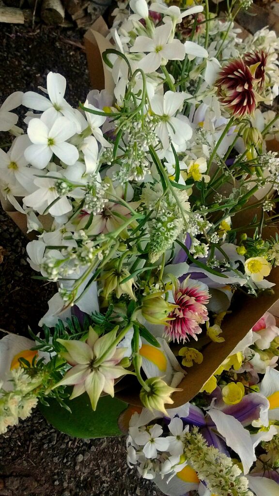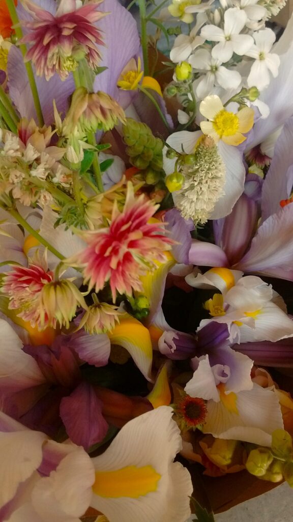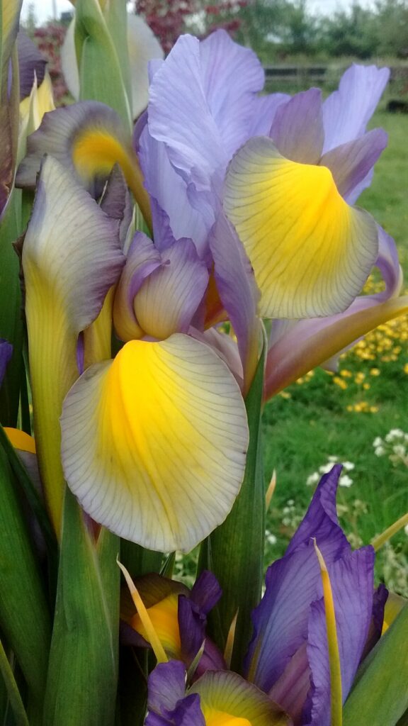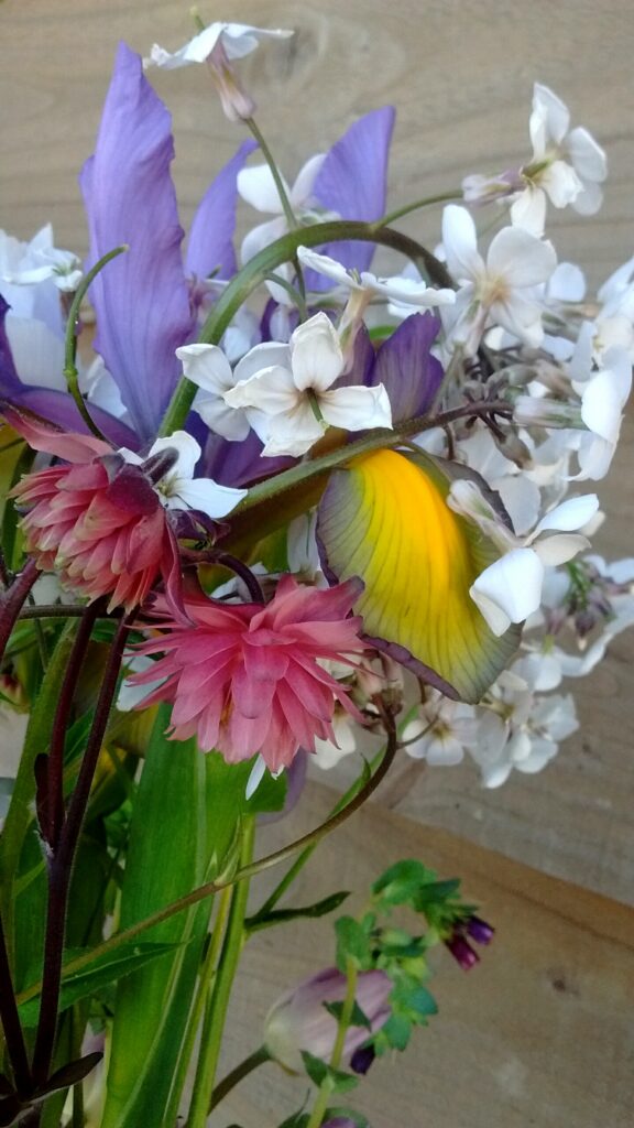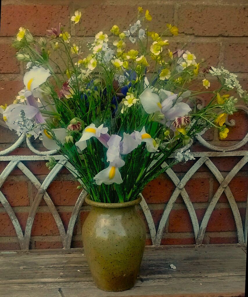 Like many other British Flower Growers this year , my beautiful Tulips had shone in April , and had mostly finished their performances by May. However , the fabulous show of Flowers continued gloriously this month , thanks to May meadow-favourites such as Aquilegias, Buttercups , Geums , Sweet Rocket and White Mignonette , plus , I had an absolutely stunning array of the most delightful Dutch Iris this year , for which I was hugely grateful , just look at these Beauties !
